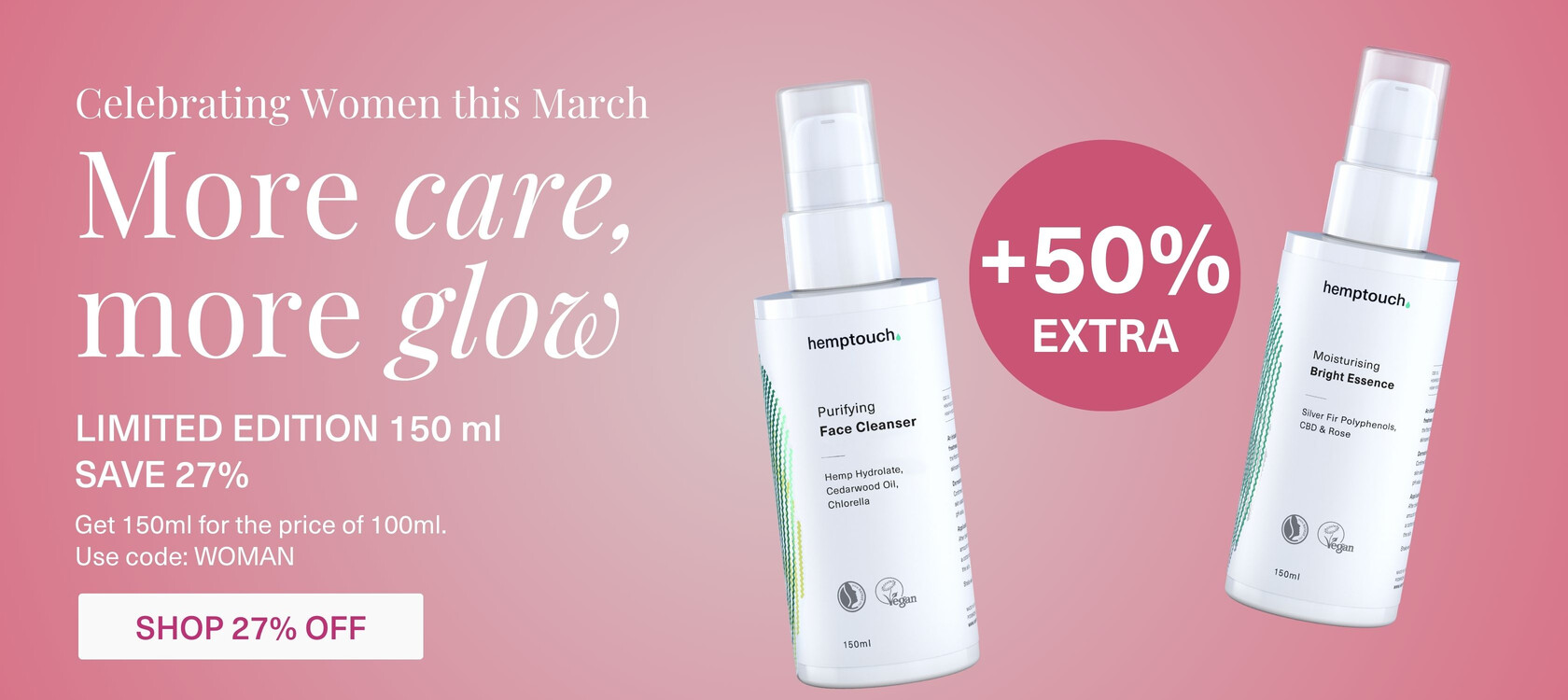 Acne free skinWith Hemptouch, I finally found products that actually work in the fight against acne. Balancing Face Cream moistures my skin improves texture, reduces inflammation and eventually helped me reach acne...