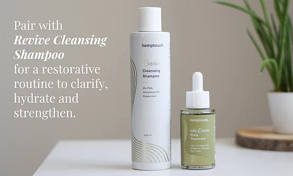 For deeper care and to activate healthy hair growth, apply the CBD Revive Scalp Treatment at least 20 minutes before using the Cleansing shampoo.